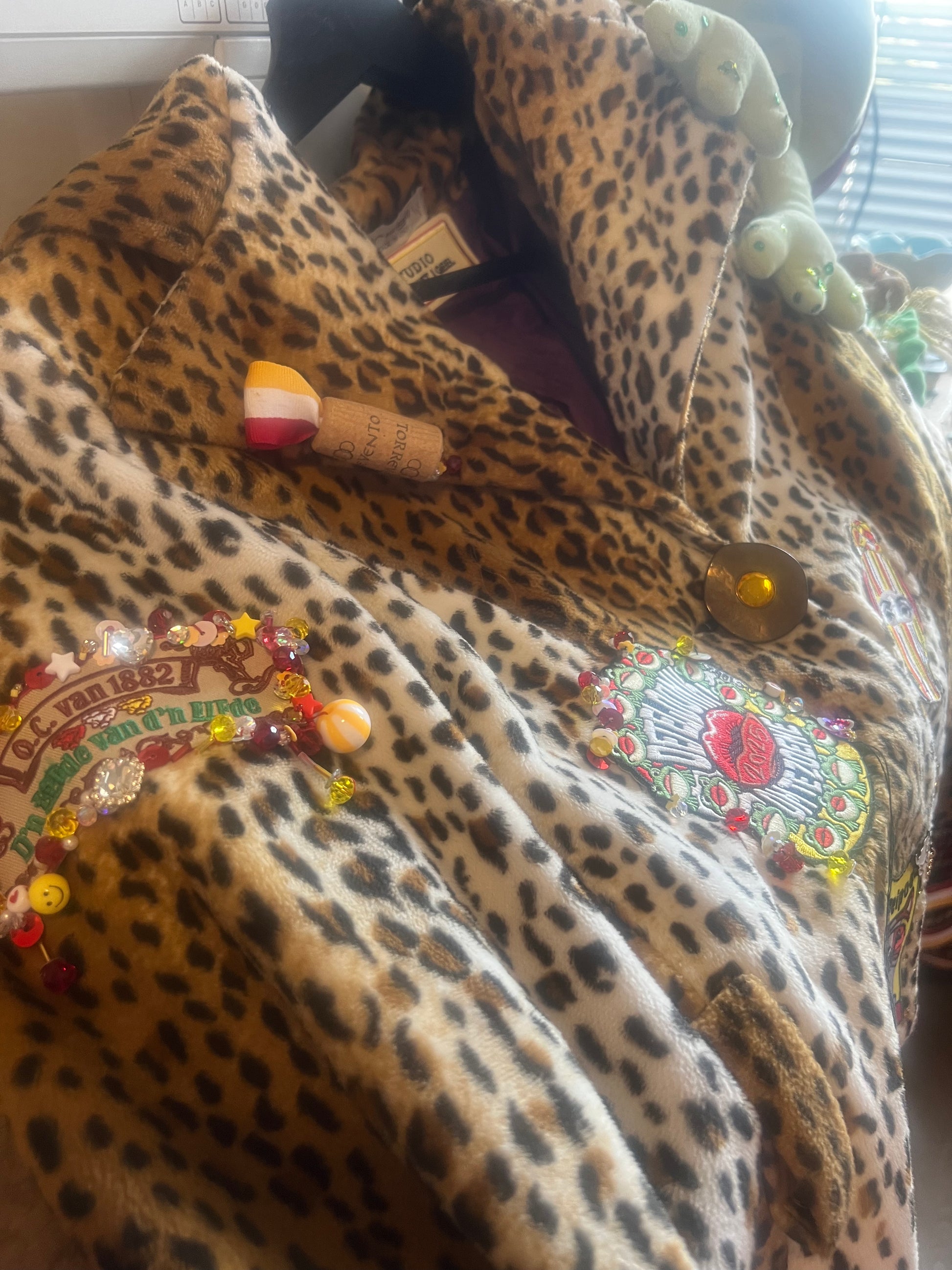 dit jasje is voorzien van luxe broches , verschillende lintjes, blingen heul veul kralen. Zelfs het 11d’n van d’n 11de embleem is vol wilde glitter.