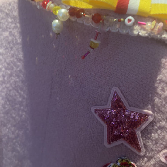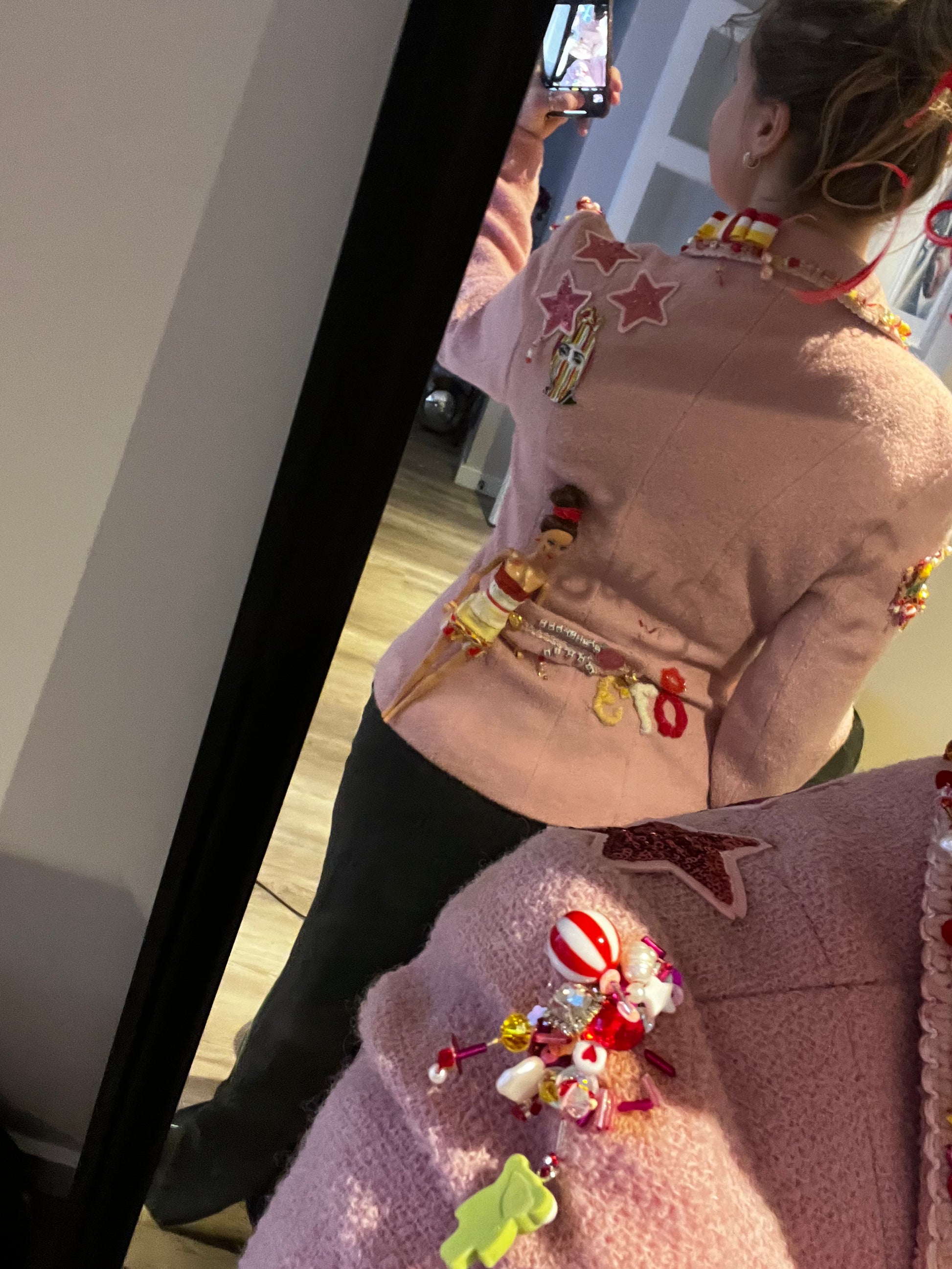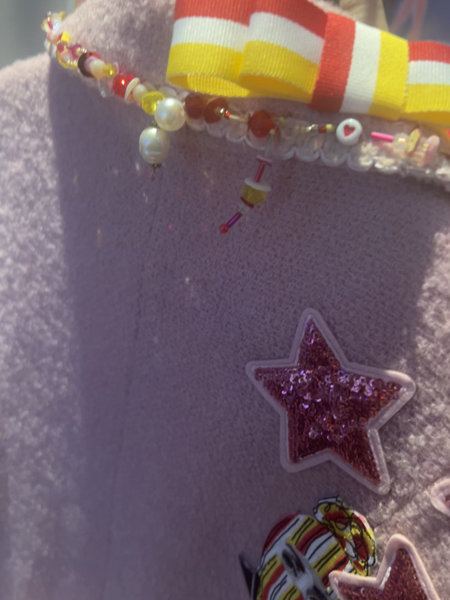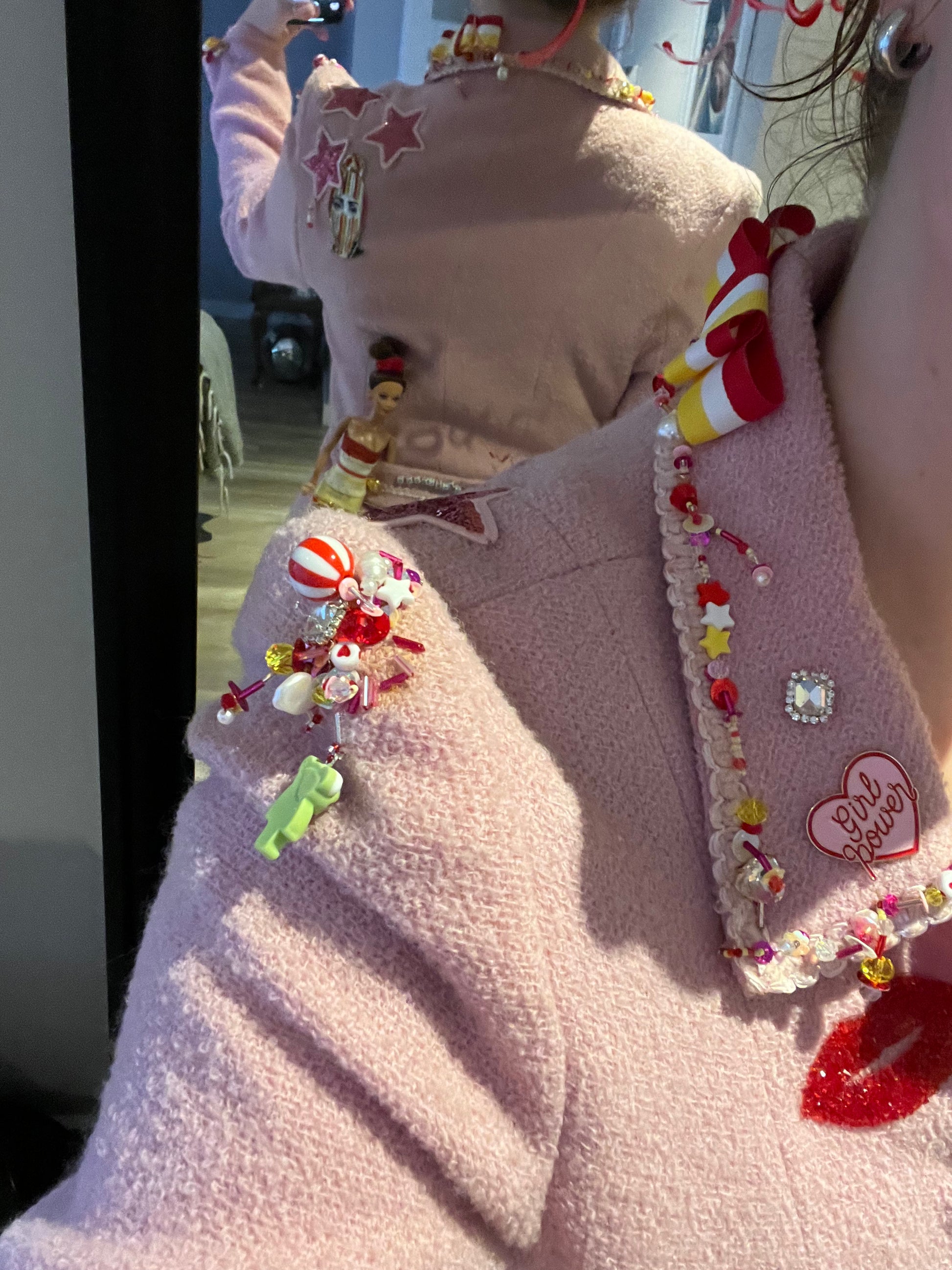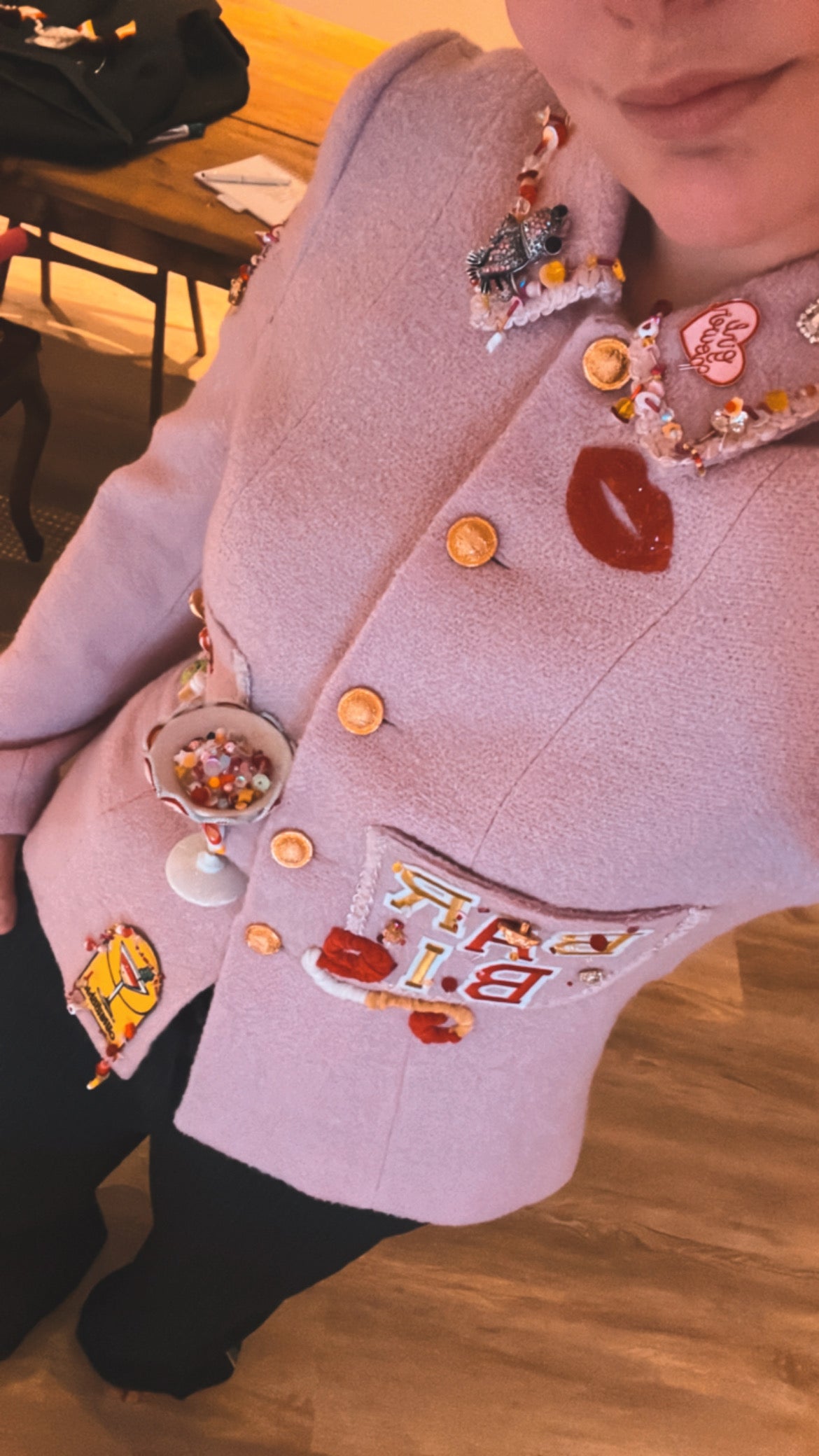 dit jasje is voorzien van luxe broches , verschillende lintjes, blingen heul veul kralen. Zelfs je nieuwe bff zit op dit jasjes ook helemaal in kleur !